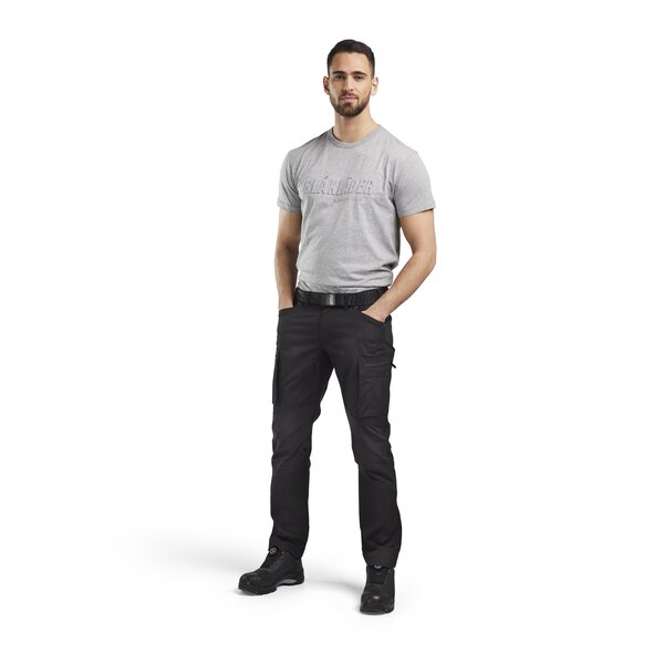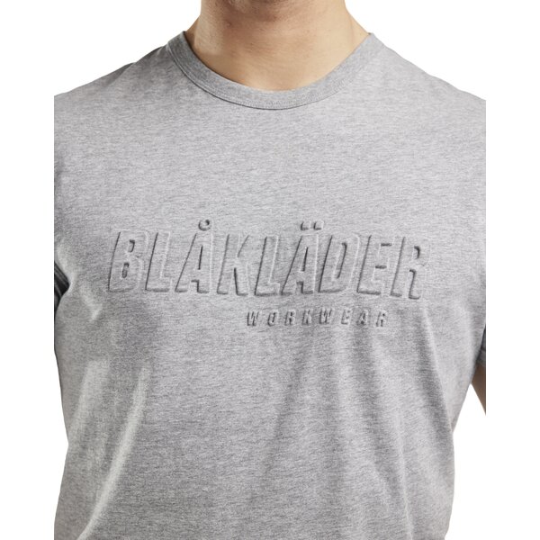 Stylisches Baumwoll-T-Shirt mit einem noch attraktiveren 3D-Druck auf der Brust mit der Aufschrift "Blåkläder". Ideal für das Tragen sowohl bei der Arbeit als auch in der Freizeit, das zeigt, dass Sie einen ausgezeichneten Geschmack für Arbeitskleidung haben.