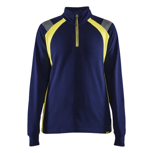 Damen Sweater Half-zip Navy/ HighVis Gelb XXXL