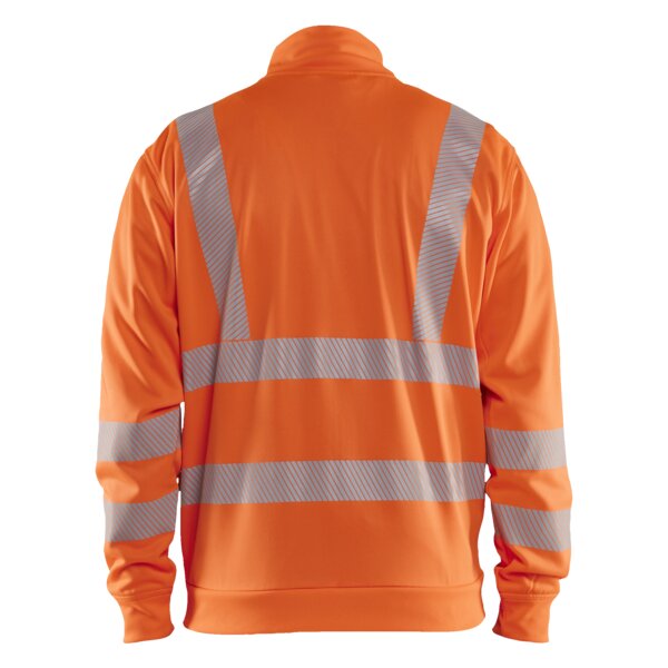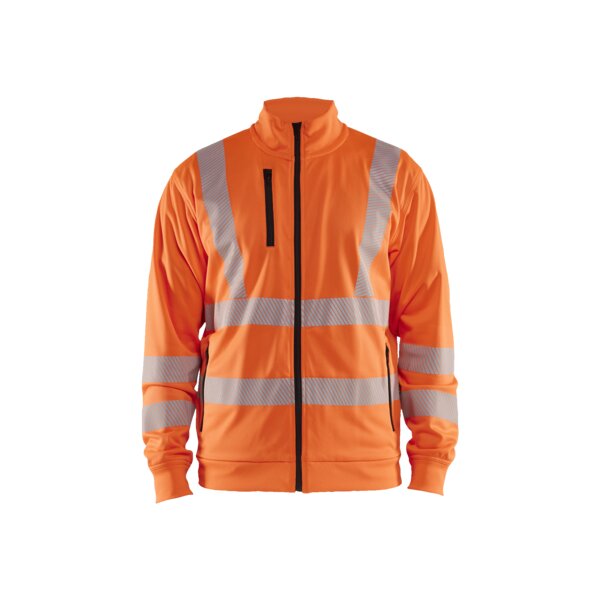 Eine Sweatjacke in High Vis Klasse 3 mit unterbrochenen Reflexstreifen für zusätzliche Sichtbarkeit. Das Material der High Vis Sweatjacke ist ein weiches und angenehmes Fleece, das eine unschlagbare Kombination aus Sicherheit und Komfort bietet. Sie hat einen Kragen, einen durchgehenden Reißverschluss, Vordertaschen, eine Brusttasche und Rippstrickbündchen. Sie kann industriell gewaschen werden. Zertifiziert nach EN ISO 20471 Klasse 3. Industriewäsche EN ISO 15797.