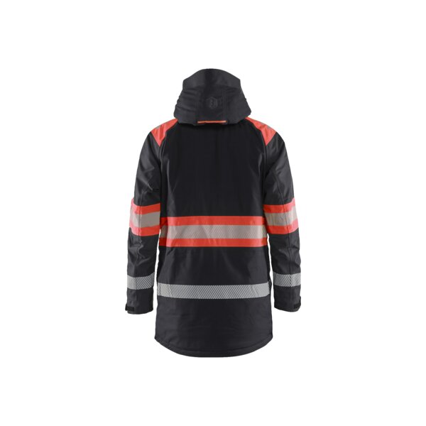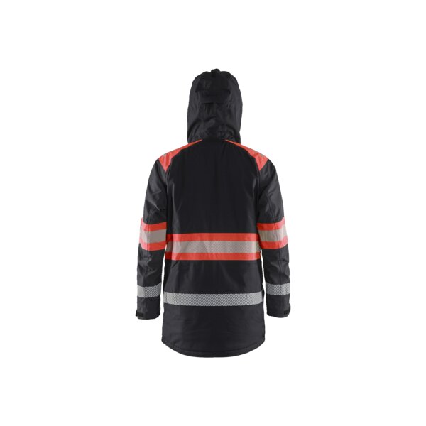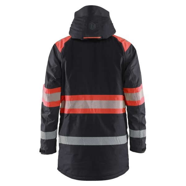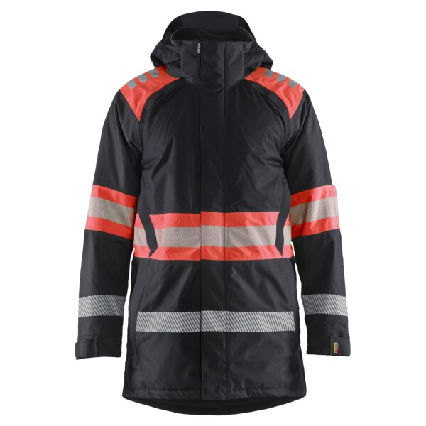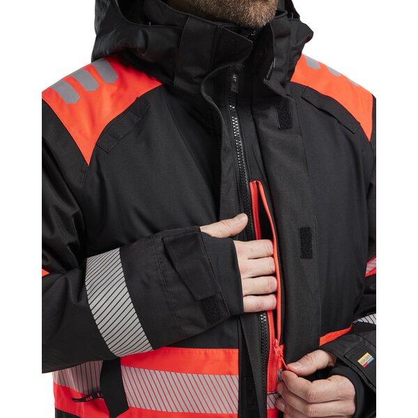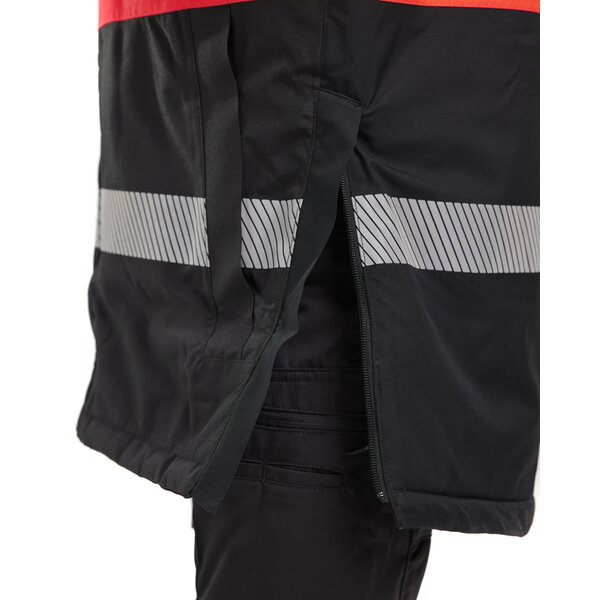 Ein High Vis Winterparka der Klasse 1, der Sie mit seiner Ausführung und einem gesteppten Futter warm hält und Sie bei der Arbeit unterstützt. Der Parka ist wind- und wasserdicht mit versiegelten Nähten und die Kapuze ist abnehmbar und für Helme und Gehörschutz geeignet. Er ist in der Taille verstellbar für individuellen Komfort und Reißverschlüsse an den Seiten sorgen für Zugang zu den Innentaschen, ohne die Vorderseite zu öffnen und zu frieren.