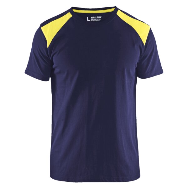 Vervollständigen Sie Ihre Garderobe mit diesem zweifarbigen T-Shirt. Verstärkte Hals- und Schulternähte und Passe über den Schultern. Passt perfekt zu unserer Industriekollektion.