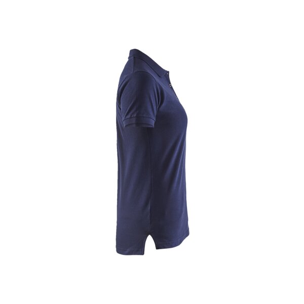 Poloshirt im Damenschnitt. Rippstrickkragen und -bündchen. Verstärkte Hals- und Schulternähte.