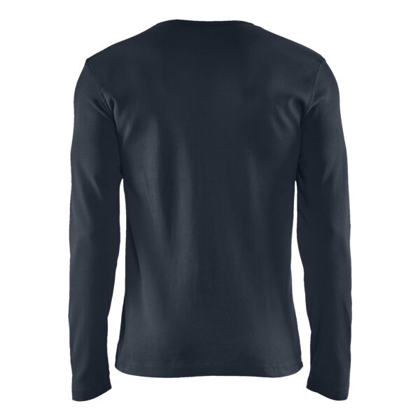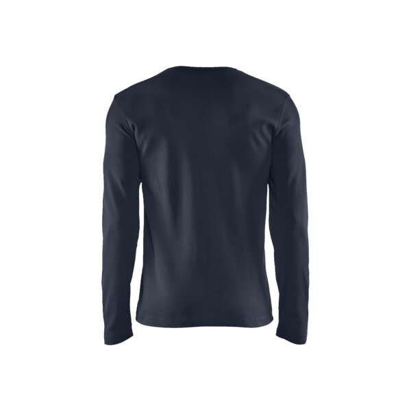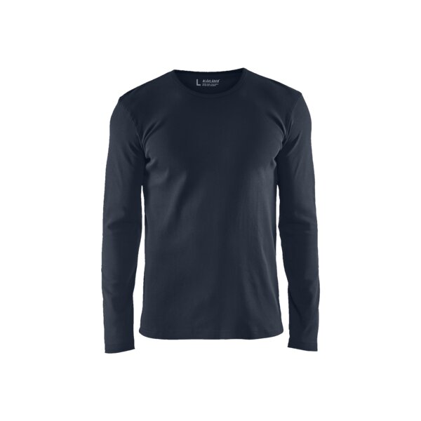Einfarbiges T-Shirt mit langen Ärmeln. Rippenstrick, Rundhalsausschnitt. Verstärkte Hals- und Schulternähte.