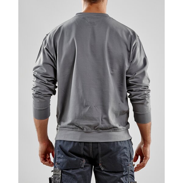 Komfortables Sweatshirt mit rundem ripp-gestrickten Hals und verstärkter Halsnaht. Verstärkte Schulternaht und Bündchen am Ärmelabschluss und am Saum des Shirts.