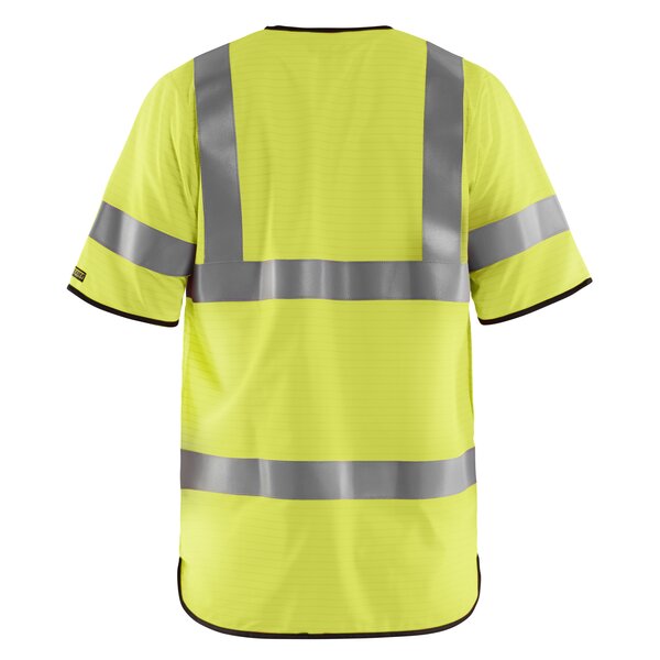 Leichte, High Vis Weste mit antistatischen Eigenschaften. Reflexstreifen um die Weste herum, auch an den Ärmeln, sorgen dafür, dass der Träger aus allen Richtungen sichtbar ist. Mit einem Reißverschluss an der Voderseite und praktischen Seitenöffnungen, die einen bequemen Zugang zu Kleidung und darunter liegenden Taschen ermöglichen. Zertifiziert nach EN 1149-5, EN ISO 20471, EN ISO 14116.