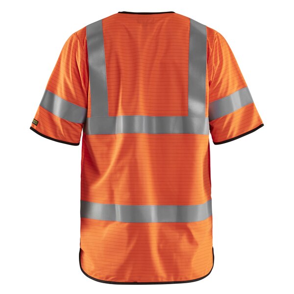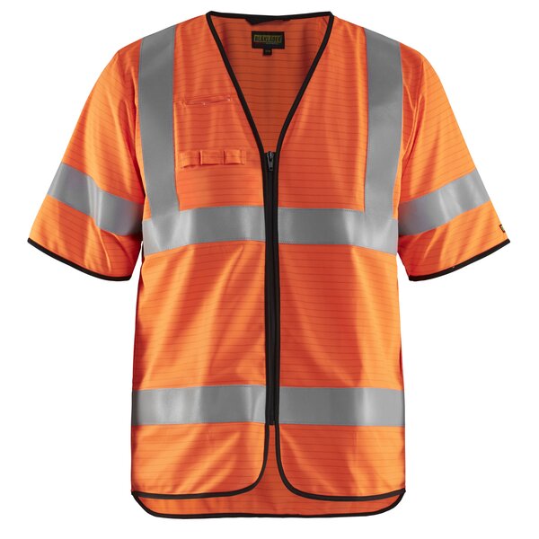 Leichte, High Vis Weste mit antistatischen Eigenschaften. Reflexstreifen um die Weste herum, auch an den Ärmeln, sorgen dafür, dass der Träger aus allen Richtungen sichtbar ist. Mit einem Reißverschluss an der Voderseite und praktischen Seitenöffnungen, die einen bequemen Zugang zu Kleidung und darunter liegenden Taschen ermöglichen. Zertifiziert nach EN 1149-5, EN ISO 20471, EN ISO 14116.