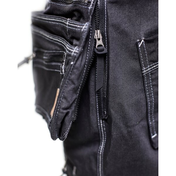 Robuste Handwerker Arbeitshose mit tiefem Schritt und eng geschnittenem Bein. Die Bundhose aus Cordura® Stretch Denim wurde hergestellt und entwickelt, um bequem auf der Hüfte zu sitzen. Für eine optimale Bewegungsfreiheit und Top-Komfort hat die Bundhose Stretch-Einsätze im Schritt und an den Waden. Die Knie und die funktionellen Taschen sind aus Cordura®1000 Verstärkungen und die Nageltaschen haben einen Reißverschluss, der lose oder fixierte Nageltaschen ermöglicht.
