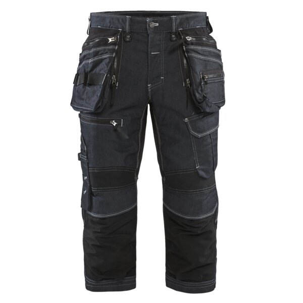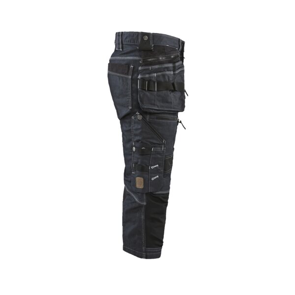 Robuste Piratenhose in Cordura® Denim Stretch mit Stretch Einsätzen im Schritt für optimale Bewegungsfreiheit. Von oben zu füllende Kniepolstertaschen aus CORDURA®-Stretch für perfekten Tragekomfort auch in kniender Position.