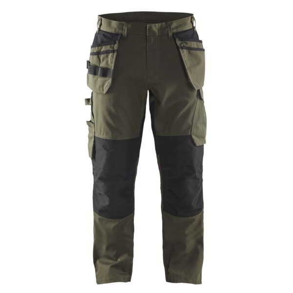 Service Arbeitshose mit Stretch und Nageltaschen Dunkel Olivgrün/Schwarz D100