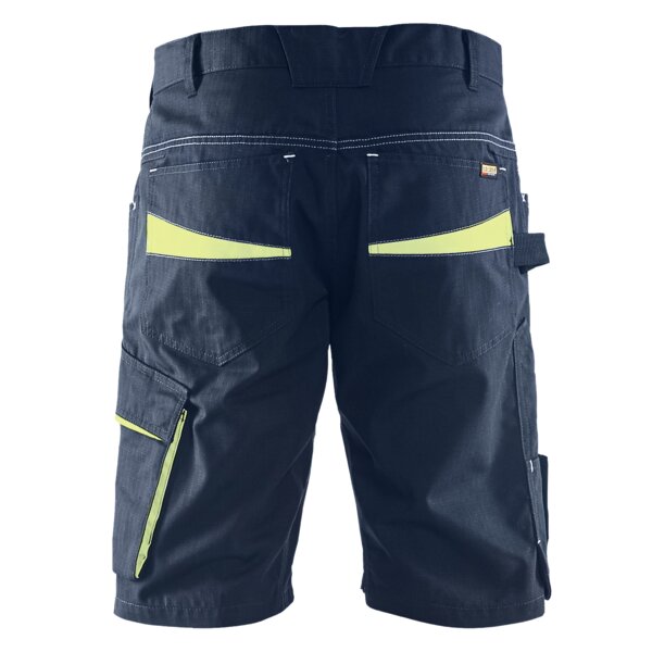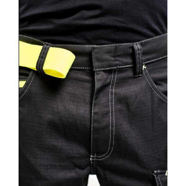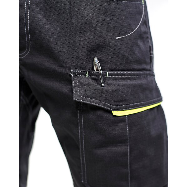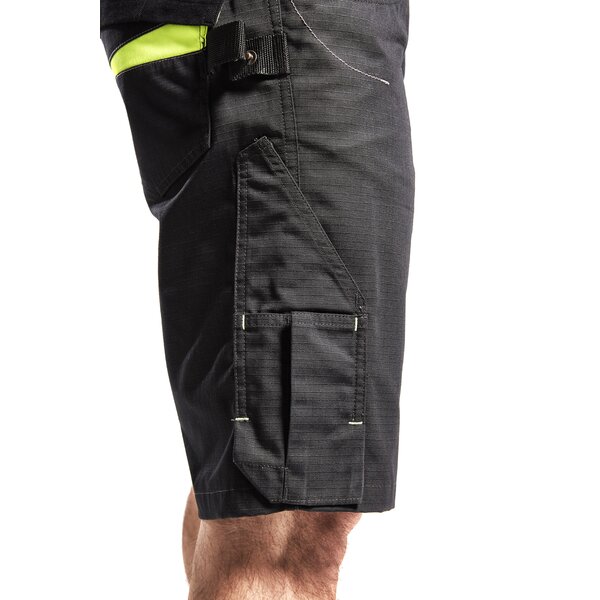 Funktionelle und strapazierfähige Shorts aus Ripstop-Gewebe. Die Shorts haben eine innenliegende Handytasche aus Mesh, eine Zollstocktasche und einen praktischen Messerhalter, wodurch sich das Kleidungsstück für Dienstleistungsberufe eignet. Nicht für schwere Arbeiten empfohlen.