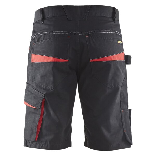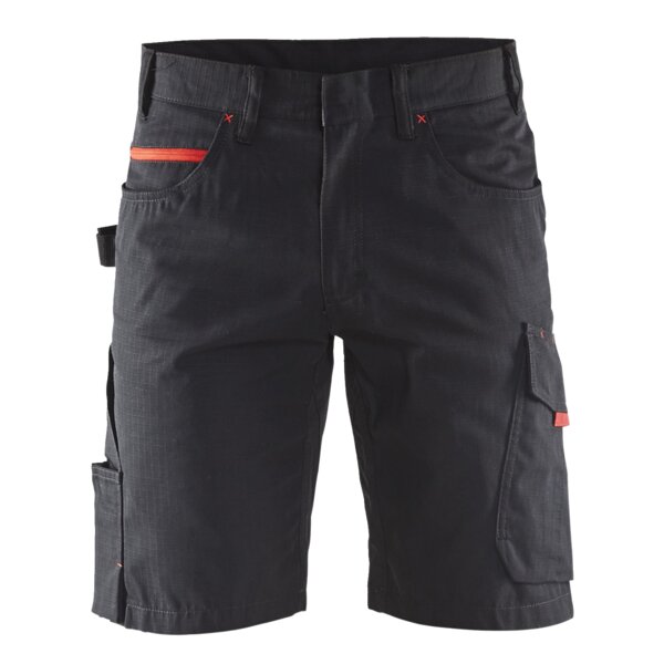 Funktionelle und strapazierfähige Shorts aus Ripstop-Gewebe. Die Shorts haben eine innenliegende Handytasche aus Mesh, eine Zollstocktasche und einen praktischen Messerhalter, wodurch sich das Kleidungsstück für Dienstleistungsberufe eignet. Nicht für schwere Arbeiten empfohlen.