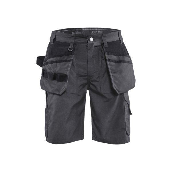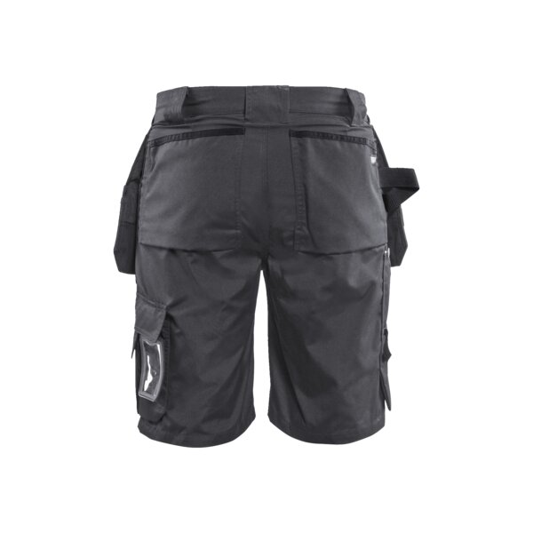 Handwerker Shorts mit einem leichteren Material für die Arbeit in warmer Umgebung und besserem Komfort. Perfekt im Sommer draußen zu tragen. Die Shorts hat verschiedene Taschenlösungen und Funktionalitäten. Die Nageltaschen, Gesäßtaschen und Zollstocktasche sind CORDURA®- verstärkt und die Innenbeinnaht ist für höhere Haltbarkeit dreifach vernäht.