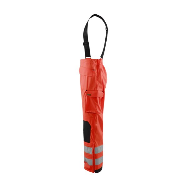 Eine Regenhose in High Vis für all jene mit Arbeitsaufgaben, die robuste aber bewegliche Regenkleidung erfordern. Die Hose ist wind- und wasserdicht mit verschweißten Nähten. Sie hat eine gute Passform mit breitem Gummiband am Rücken, verstellbare und abnehmbare Hosenträger mit Gummiband und einstellbare Beinenden mit Knöpfen. Leicht zugängliche Taschen, wie eine Beintasche mit Balg und Patte, Zollstocktasche mit extra Tasche und Messehalter und Öffnung mit Patte, um heraushängende Nageltaschen zu ermöglichen. Die Hose ist an den Knien und an der Wade verstärkt. Zertifiziert nach EN 343, Schutzkleidung vor schlechtem Wetter und EN ISO 20471, Klasse 2, Schutzkleidung mit hoher Sichtbarkeit. Die Farben 4600 und 9900 sind nicht nach EN ISO 20471 zertifiziert. Die Farben 3300, 4600, 5300 und 9900 wurden aktualisiert. Das ältere Modell wird solange der Vorrat reicht, ausgeliefert. Für das aktualisierte Modell in Farbe 4600 und 9900, schauen Sie sich den Artikel 1305 an.