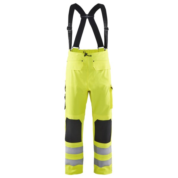 Eine Regenhose in High Vis für all jene mit Arbeitsaufgaben, die robuste aber bewegliche Regenkleidung erfordern. Die Hose ist wind- und wasserdicht mit verschweißten Nähten. Sie hat eine gute Passform mit breitem Gummiband am Rücken, verstellbare und abnehmbare Hosenträger mit Gummiband und einstellbare Beinenden mit Knöpfen. Leicht zugängliche Taschen, wie eine Beintasche mit Balg und Patte, Zollstocktasche mit extra Tasche und Messehalter und Öffnung mit Patte, um heraushängende Nageltaschen zu ermöglichen. Die Hose ist an den Knien und an der Wade verstärkt. Zertifiziert nach EN 343, Schutzkleidung vor schlechtem Wetter und EN ISO 20471, Klasse 2, Schutzkleidung mit hoher Sichtbarkeit. Die Farben 4600 und 9900 sind nicht nach EN ISO 20471 zertifiziert. Die Farben 3300, 4600, 5300 und 9900 wurden aktualisiert. Das ältere Modell wird solange der Vorrat reicht, ausgeliefert. Für das aktualisierte Modell in Farbe 4600 und 9900, schauen Sie sich den Artikel 1305 an.