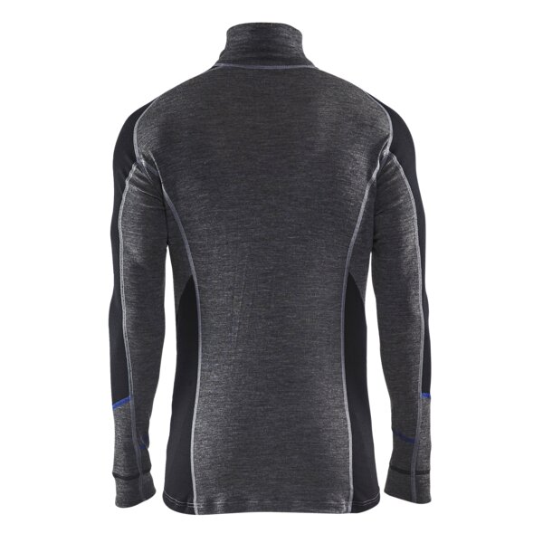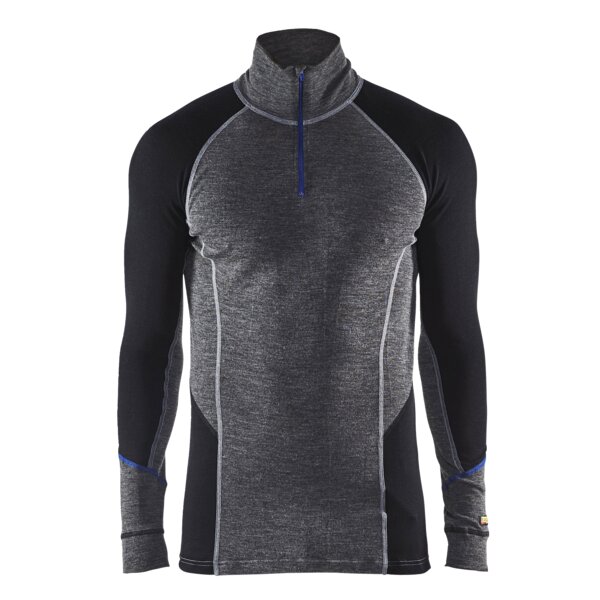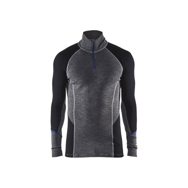 Zippkragen-Unterhemd WARM 100% Merino Mittelgrau/Schwarz XXXL