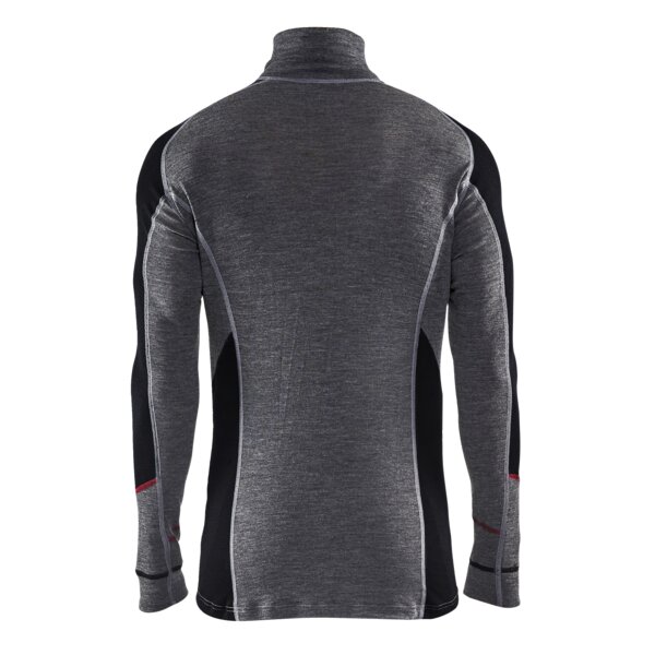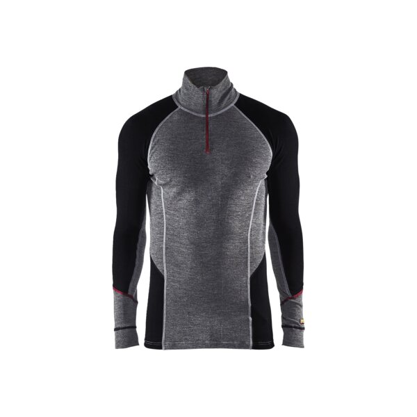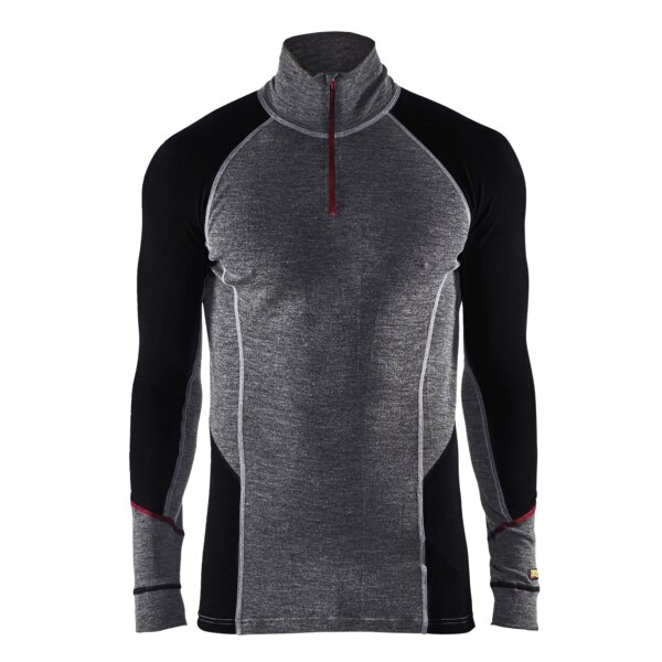 Reißverschluss Unterhemd XWARM, 100% Merinowolle Mittelgrau/Schwarz XXL