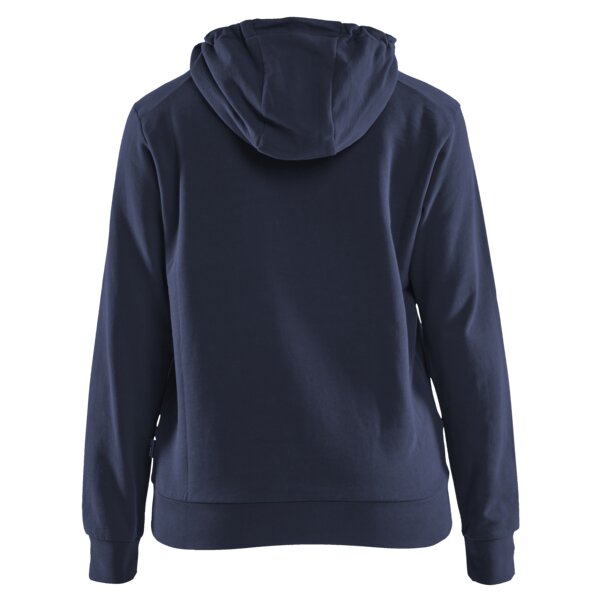 Stylischer, angenehm warmer Hoodie aus weichem Jersey mit femininem Schnitt, ideal für die Arbeit und Freizeit. Ausgestattet mit einer Handytasche mit Reißverschluss und Öffnungen für Kopfhörer in der Tasche. Der Kapuzensweater ist mit einem sehr auffälligen 3D-Druck auf der Brust mit der Aufschrift "Blåkläder" verziert, der zeigt, dass Ihr Herz in Sachen Arbeitskleidung an der richtigen Stelle sitzt.