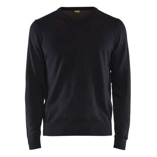 Gestrickter V-Ausschnitt Pullover, der perfekt zu den Blåkläder Chinos 1465 passt, für einen stilvollen Business-Look bei der Arbeit.