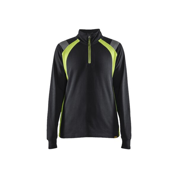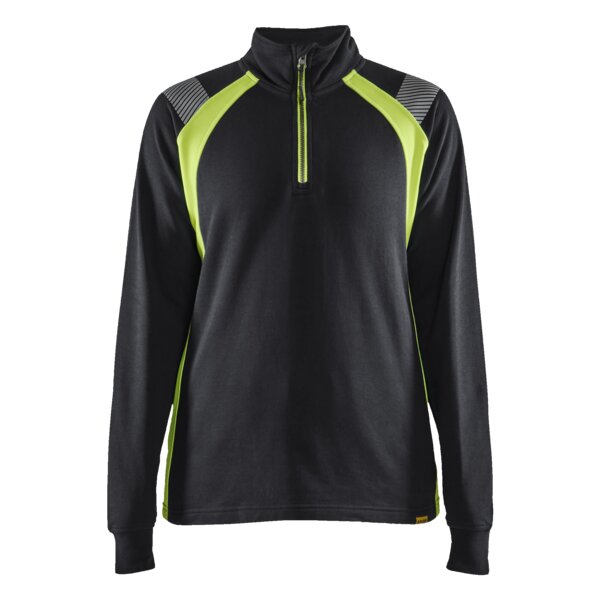 Damen Sweater Half-zip Schwarz/Gelb XXXL