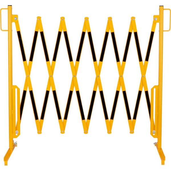 Scherengitter DANCOP, H 1050mm, L bis 3600mm gelb/schwarz stationär mit Standfuß