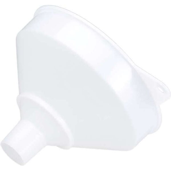 -Trichter, mit Sieb Diese Trichter haben eine Aufhängeöse, Entlüftungsrippen und einen Überlaufrand. Das Sieb ist aus Edelstahlgewebe.