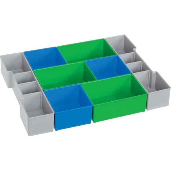 -Boxen-Set für L-BOXX® 102 Bestehend aus: 2x U3, grau mit 6 Trennwänden, 3x C3 blau, 3x D3 grün