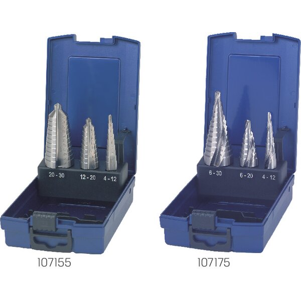 Satz in Kunststoffkassette zusammengestellt aus Stufenbohrer 107170