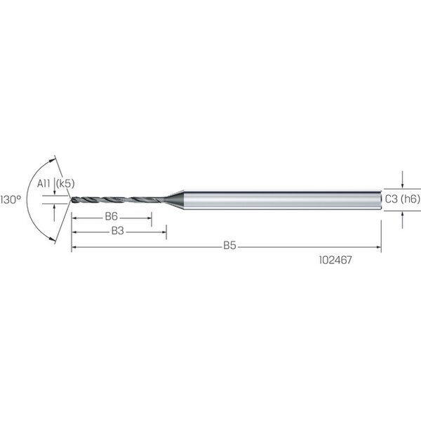 - spezielle Bohrerspitzengeometrie für hohe Schneideckenstabilität, kurze Späne und Selbstzentrierung