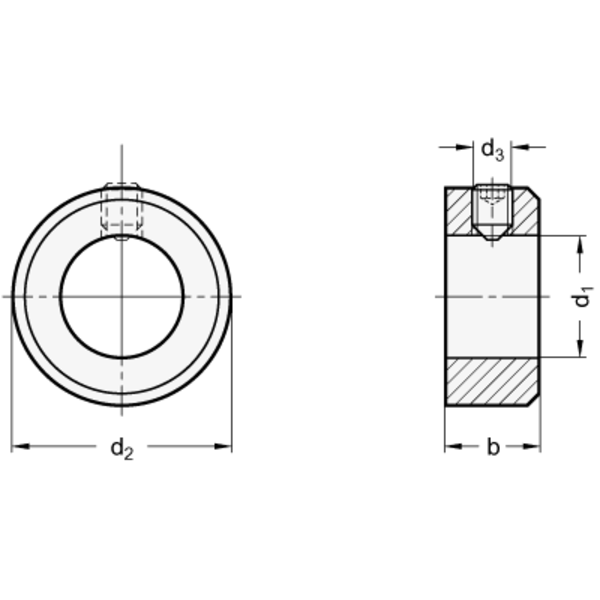 Die Klemmung erfolgt radial auf der Wellen- oder Achsenoberfläche. In Verbindung mit einer Anbohrung oder einem Einstich am Aufnahmedurchmesser lassen sich die Stellringe exakt positionieren und gleichzeitig werden dadurch Beschädigungen an der Klemmstelle vermieden.