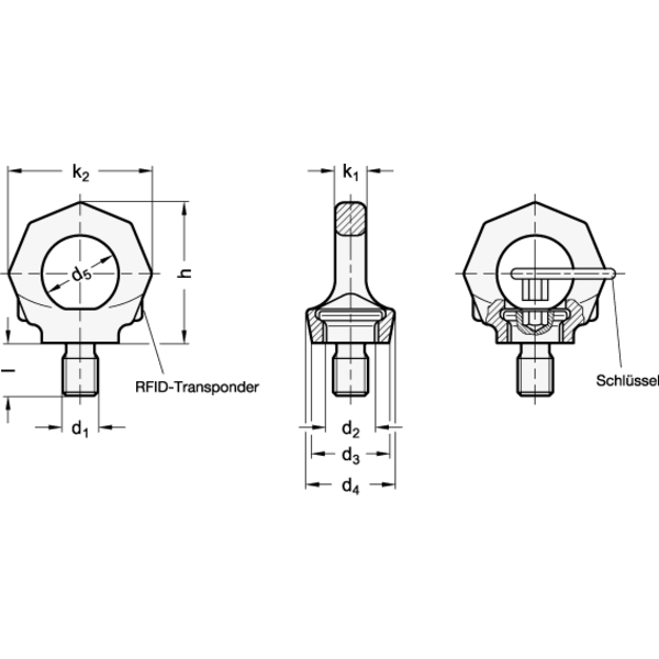 Ringschrauben GN 581 bieten eine hohe Belastbarkeit mit geprüfter Sicherheit (Sicherheitsfaktor 4) in allen Belastungsrichtungen.
