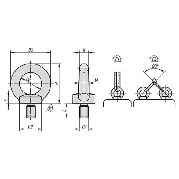 F2 Tragfähigkeit unter max. 45° pro Ringschraube.