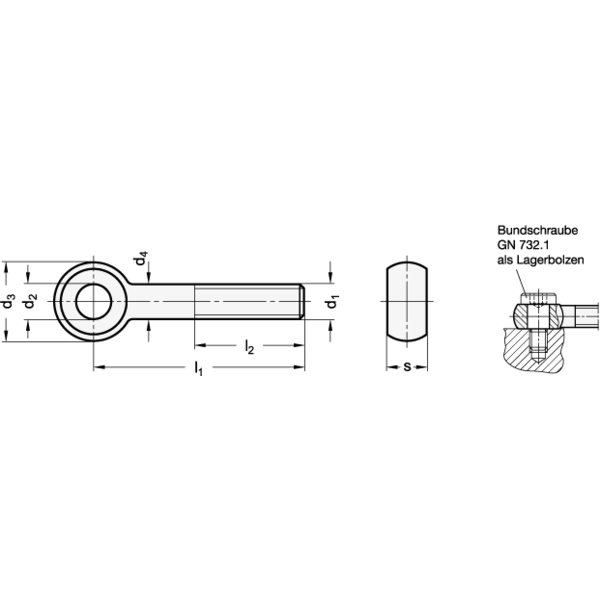 Als Lagerbolzen können bei den Größen M 6, M 8, M 10 und M 12 Bundschrauben GN 732.1 eingesetzt werden.