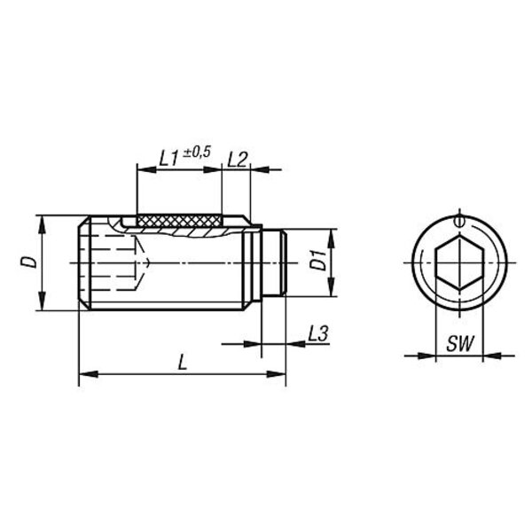 Druckschrauben eignen sich besonders zum schonenden Klemmen oder Andrücken von Gewindespindeln, Achsen, Wellen und oberflächenbehandelten Teilen.