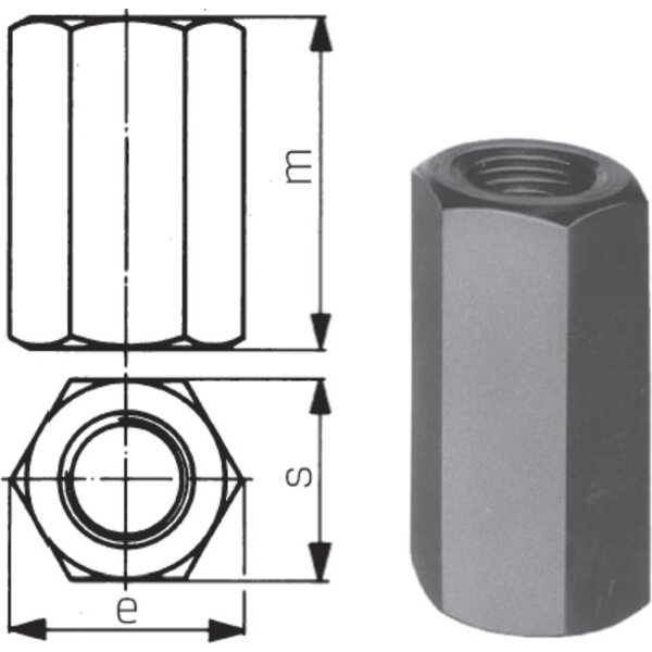 Verlängerungsmutter AMF, Sechskantmutter 3,0 × D hoch