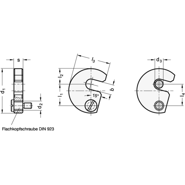 Schwenkscheiben DIN 6371 übertragen die Spannkraft einer Schraube oder Mutter auf das Werkstück. Nach dem Lösen des Gewindes können sie aus dem Spannbereich geschwenkt werden. Gleichzeitig sind sie unverlierbar.