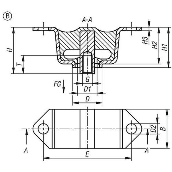 GUMMI-METALL-DECKENELEMENT INNENGEWINDE M08, FORM:B, ECKIG, STAHL VERZINKT, K...