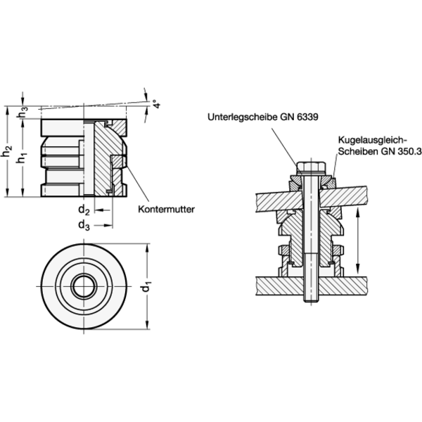 GANTER Edelstahl Ausgleichselement mit Kugelscheibe
