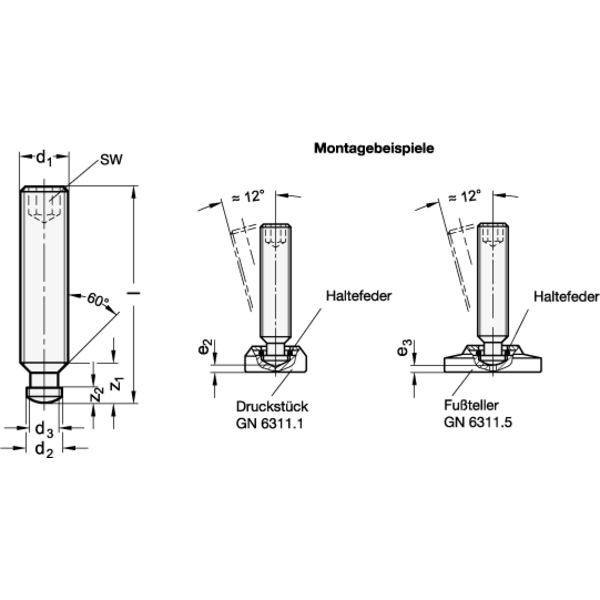 Durch den Spreng- bzw. Haltering des Druckstückes wird eine sehr einfache, lösbare Verbindung zwischen Gewindestift und Druckstück erzielt.