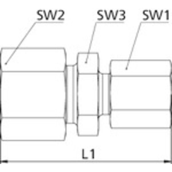 Gerade Reduzierverschraubung, Rohr-Außen-Ø Muffen 15/12 mm, PN max. 315 bar, SW1 24, SW2 27, SW3 22, Stahl verzinkt,. Gerade Reduzierverschraubung, leichte Ausführung