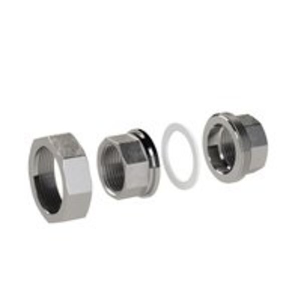 Lösbarer Doppelgewindenippel, flachdichtend, G 1/2, IG, SW 38, Arbeitsdruck max. 20 bar, ES 1.4408.