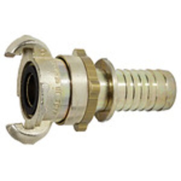 Sicherheits-Klauenkupplung mit Schlauchanschluss, LW 19 (3/4"), Sicherungsbund, Temperguss, PN max. 16 bar, Temp. -40 °C bis 95 °C. Die universelle Standardkupplung in Sicherheitsausführung nach DIN 3238 zur absolut sicheren Druckluftversorgung am Bau und in der Industrie. Spielend leicht zu kuppeln, gesichert gegen unbeabsichtigtes Öffnen: Nach dem Einkuppeln die Feststellmutter anziehen! - Robuste Kupplungen mit Kopf aus Temperguss, Tülle aus Stahl mit spezieller Kontur, verzinkt und gelb passiviert - Chrom-VI-frei, mit Sicherheits-Doppelnocken - Große Durchgangsbohrung für mehr Durchfluss