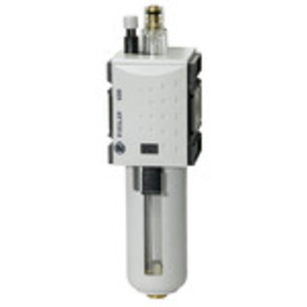 Nebelöler »FUTURA« mit Polycarbonatbehälter und Schutzkorb, BG 1, G 1/4, Eingangsdruck max. 16 bar, Temp. -10 °C bis 50 °C. Nebelöler in modernem Design mit hervorragenden Durchflusswerten. Das Gerät bietet die Möglichkeit der automatischen Ölnachfüllung. Hierzu muss am Gewindestutzen des Ölbehälters ein Schlauch angeschlossen werden. Bei Betätigung des Öleinfüllknopfs oben am Gerät öffnet sich eine Venturidüse, welche durch Unterdruck Öl in den Behälter saugt.