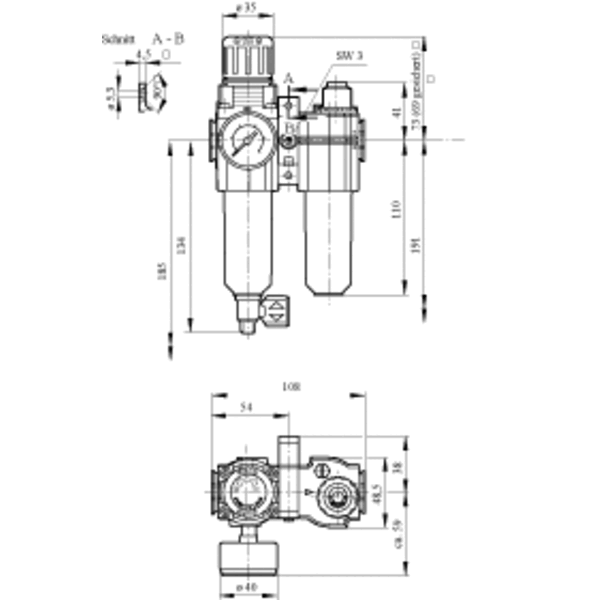 Komplette Wartungseinheit mit Absperrventil Anschluss G1/4