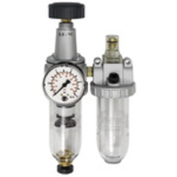 Wartungseinheit 2-tlg. »Standard« mit Polycarbonatbehälter, BG 3, G 1/2, Eingangsdruck max. 16 bar, Regelbereich 0,5 - 10 bar. Zweiteilige Wartungseinheiten, bestehend aus einem vordruckunabhängigen, rücksteuerbaren Membrandruckregler mit Sekundärentlüftung in Verbindung mit einem Zentrifugalabscheider und einem Proportionalöler.