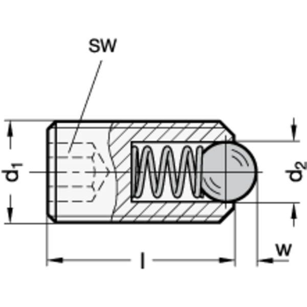 Federnde Druckstücke, Stahl / Edelstahl, mit Kugel, mit Innensechskant