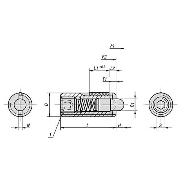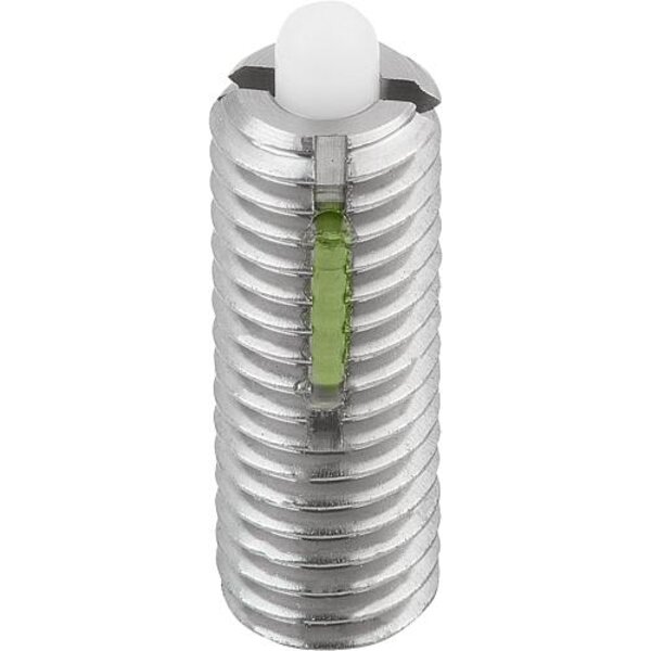 FEDERNDES DRUCKSTÜCK STANDARD FEDERKRAFT, MIT GEWINDESICHERUNG D=M08 L=22, EDELSTAHL, KOMP:BOLZEN AUS POM