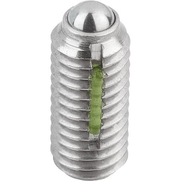 FEDERNDES DRUCKSTÜCK STANDARD FEDERKRAFT, MIT GEWINDESICHERUNG D=M04 L=10, EDELSTAHL, KOMP:KUGEL AUS