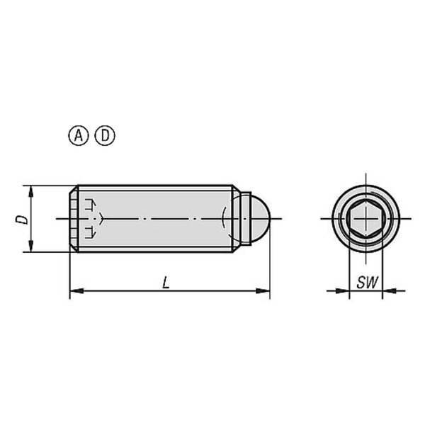 KUGELDRUCKSCHRAUBE OHNE KOPF, FORM:A KUGEL AUS STAHL, M08, L=31,2, VERGÜTUNGSSTAHL, KOMP:WÄLZLAGERSTAHL