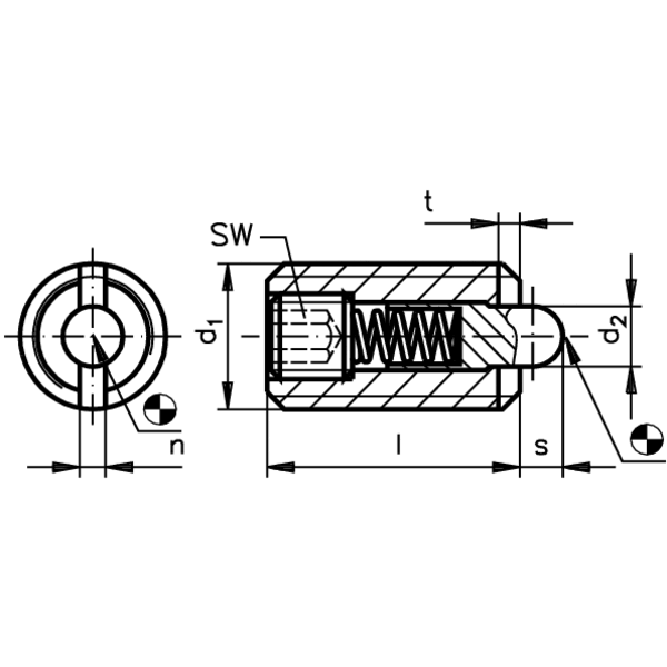 Federndes Druckstück M6 Ausführung A, Stahl brüniert
