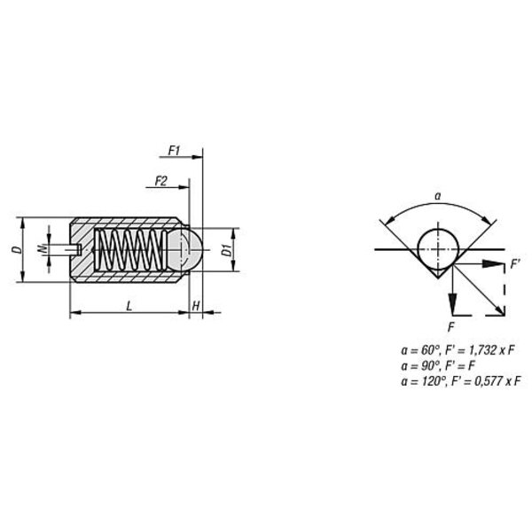 FEDERNDES DRUCKSTÜCK STANDARD FEDERKRAFT D=M06 L=14, KUNSTSTOFF, KOMP:KUGEL AUS EDELSTAHL